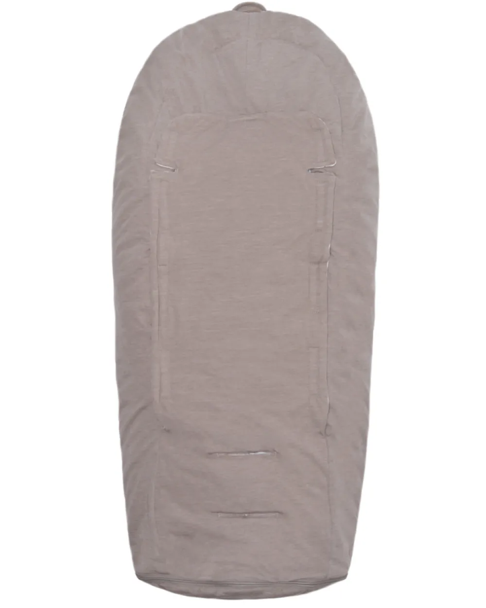 Køreposen er lavet af genbrugsmaterialer og økologisk viskose af bambus. Posen kan forlænges og har således en lang levetid.