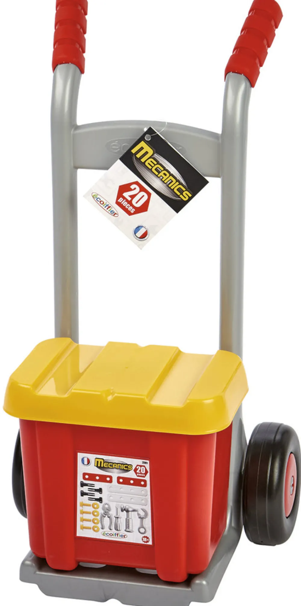 En gør-det-selv-vogn med en værktøjskasse indeholdende 20 tilbehør.