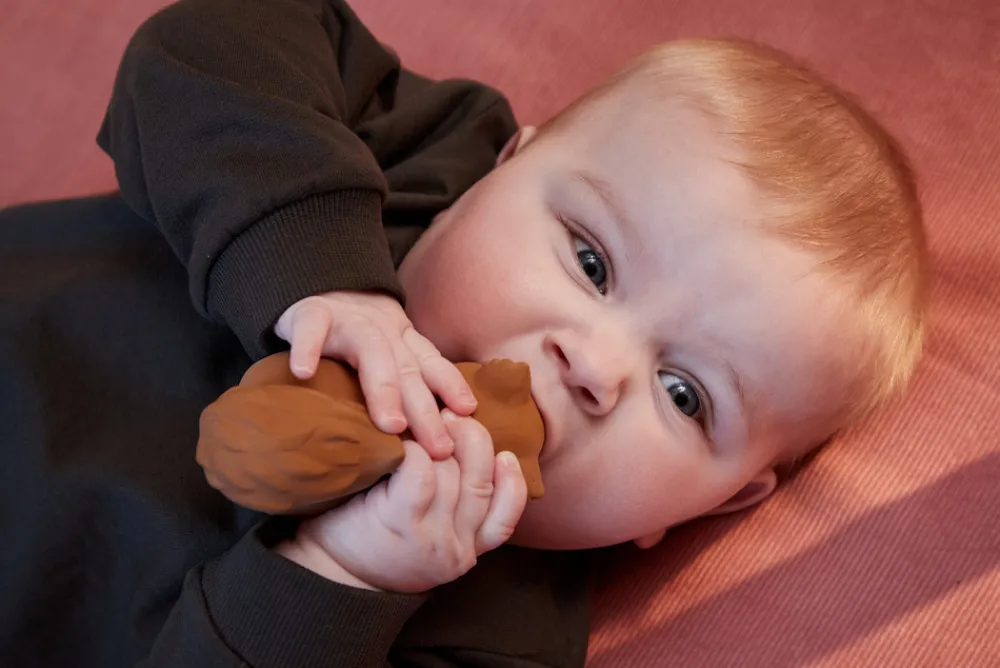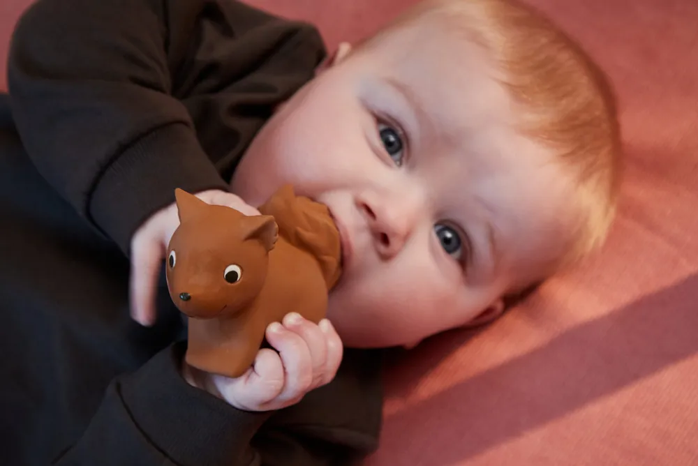 Mød egernet Sonja – med hendes søde lille ansigt og fluffy hale er hun uimodståelig. Egern-bidedyret er designet med spændende teksturer og former, der stimulerer både mund og hænder. Indeni har hun en klokke med en blød ringelyd, som baby helt sikkert vil elske. Sonja er lavet af 100 % naturgummi, som er naturligt fri for BPA, PVC og phthalater. Bidedyret er lavet af ét stykke naturgummi uden huller eller ventiler, så der ikke kan komme bakterier eller snavs ind. Legetøjet er grundigt testet og godkendt efter den europæiske sikkerhedsstandard EN71 og bærer CE-mærket.
