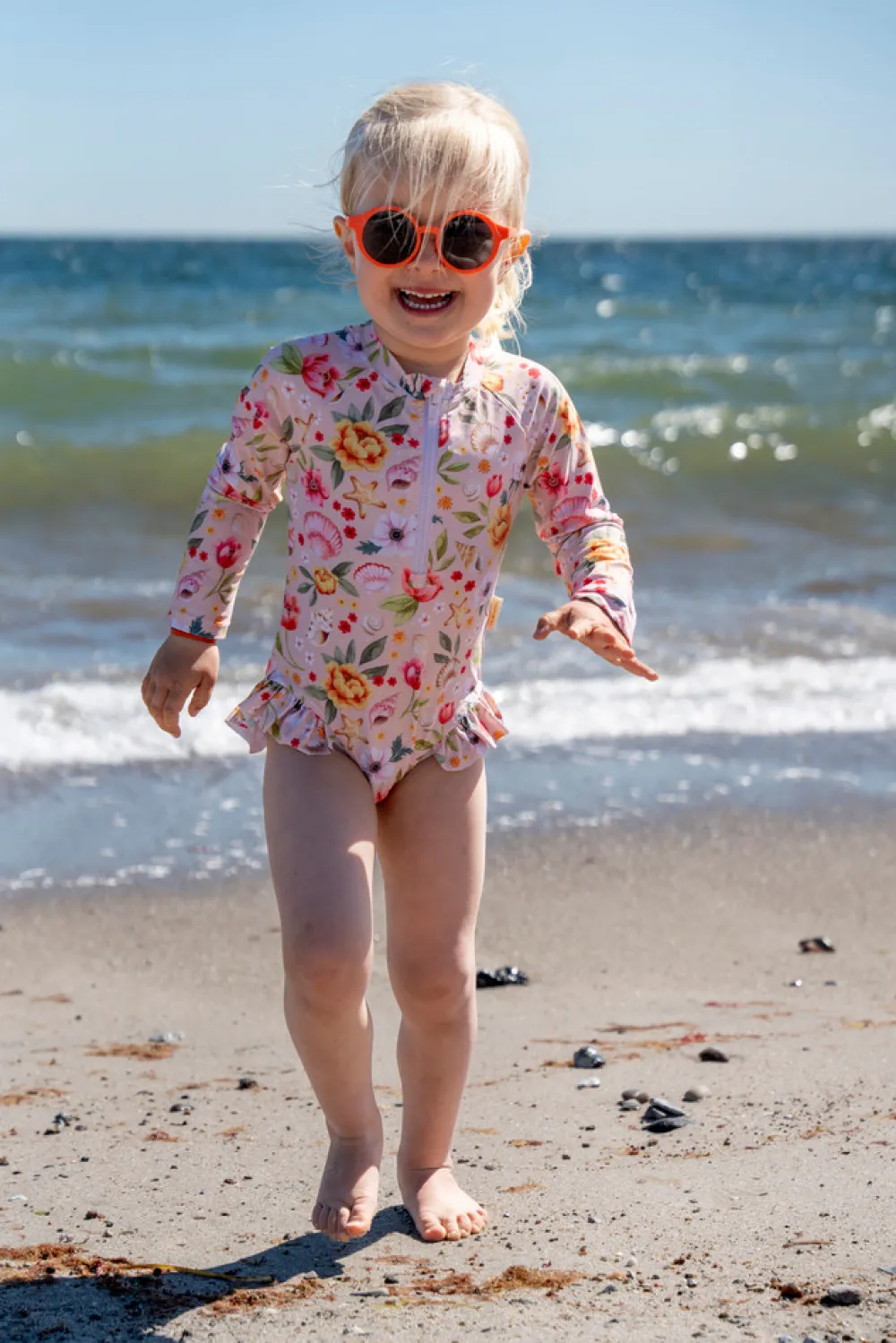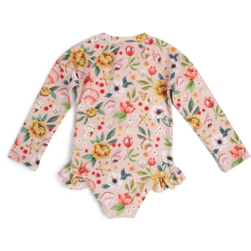 Med en charmerende UV-dragt til børn bliver sommerdagene i svømmehallen, på stranden eller i haven endnu mere fantastiske! Den fine dragt med lange ærmer og det sødeste flæseskørt giver UV50+ beskyttelse og er behagelig for barnet at have på. UV-dragterne begejstrer små og større børn med flotte, håndtegnede motiver.