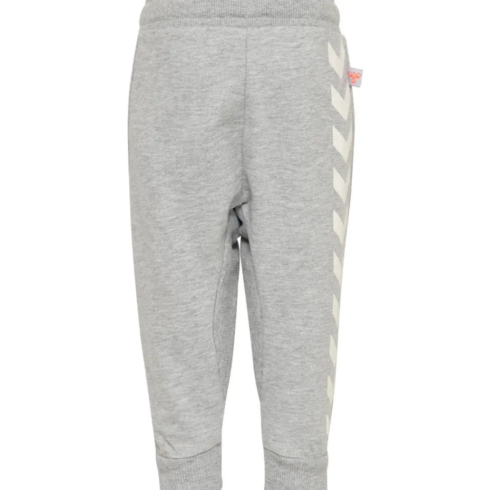 Bukser fremstillet i skønt sweat fleece, som føles blødt mod huden og giver fuld bevægelsesfrihed. Bukserne har en klassisk hummel® silhuette med de ikoniske vinkler langs buksebenene og et kært, sporty look. Ribben omkring taljen og i buksebenskanten sikrer en god, velsiddende pasform for den lille.
