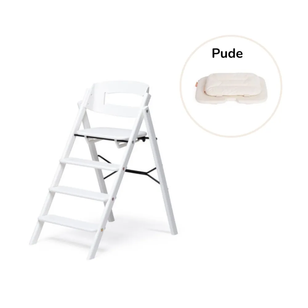 Pude: Vendbart pudesæt til KAOS Klapp højstolen giver et polstret sæde og ryglæn. Kan bruges på begge sider, kompatibel med eller uden sikkerhedsbøjlen. Let at holde ren, maskinvask (30 grader).