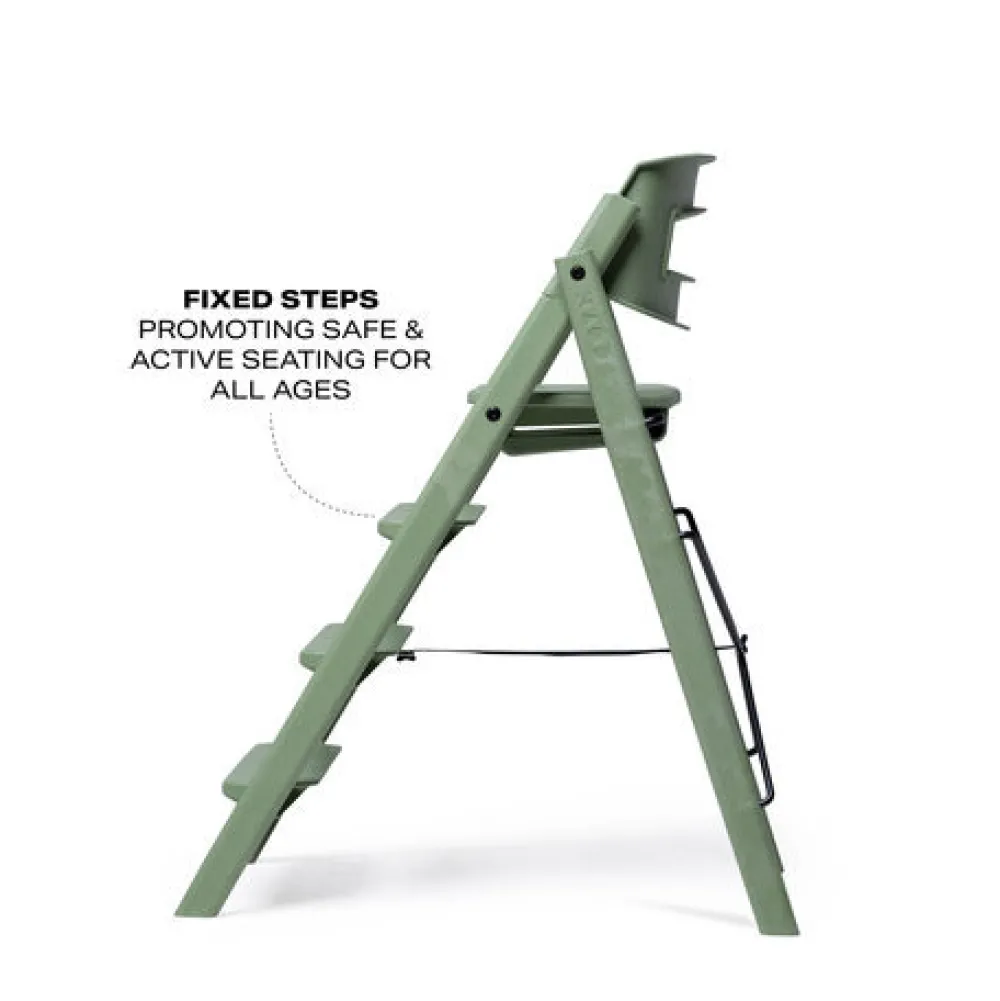 Kaos højstol: En smuk tilføjelse rundt om spiseborderet. Dens foldbare design gør den til en fantastisk pladsbesparende højstol, der også er perfekt lige til at tage med sig. De faste stigetrin er unikke og gør det nemt for barnet at klatre op og ned af KAOS Klapp højstolen på egen hånd. Barnet får en ergonomisk og aktiv siddeplads og hviler benene naturligt ved de forskellige trin, når de vokser. Bare fold stolen ud, klik sædet i låseposition, og den er klar til brug.