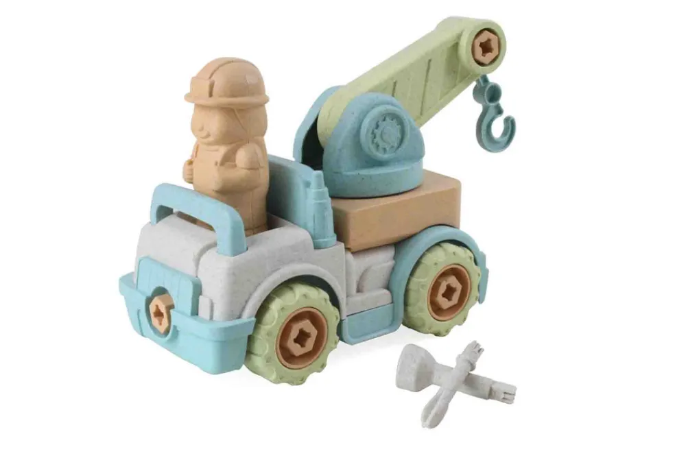 Kranvogn legetøjsbil lavet af biomateriale fra hvedestrå. 100% nedbrydeligt.