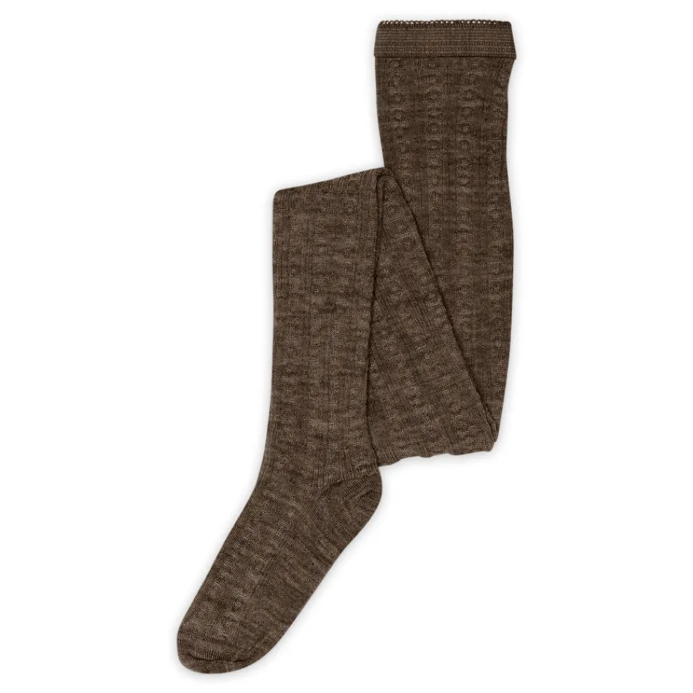 Dejlige strømpebukser i Superwash uld. Strømpebukserne er lavet i et smukt og feminint mønster, der skifter mellem rib-struktur og cirkler, hvilket sikrer en god pasform kombineret med et sødt udseende. Dette gør strømpebukserne ideelle til både hverdag og festligt brug. Forstærket hæl og tå sikrer, at strømpebukserne har en god pasform på fødderne og en høj holdbarhed.