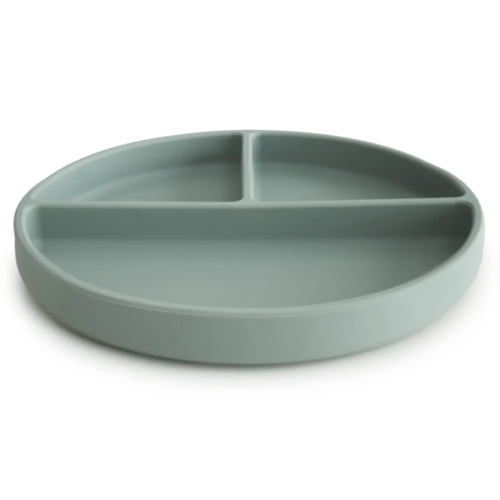 Mushie tallerken med skridsikker bund. Tallerken i silikone med sugekop i bunden, hvilket sikrer, at tallerkenen ikke rykker sig, når baby spiser sin mad. Den er opdelt i tre, så det er muligt at opdele maden. Tallerkenen har en god størrelse, og den klæber godt fast på en ren, glat og tør overflade med god friktion. Kombinér tallerkenen med Mushies andre produkter til spisetid for at skabe et fuldent og elegant sæt.