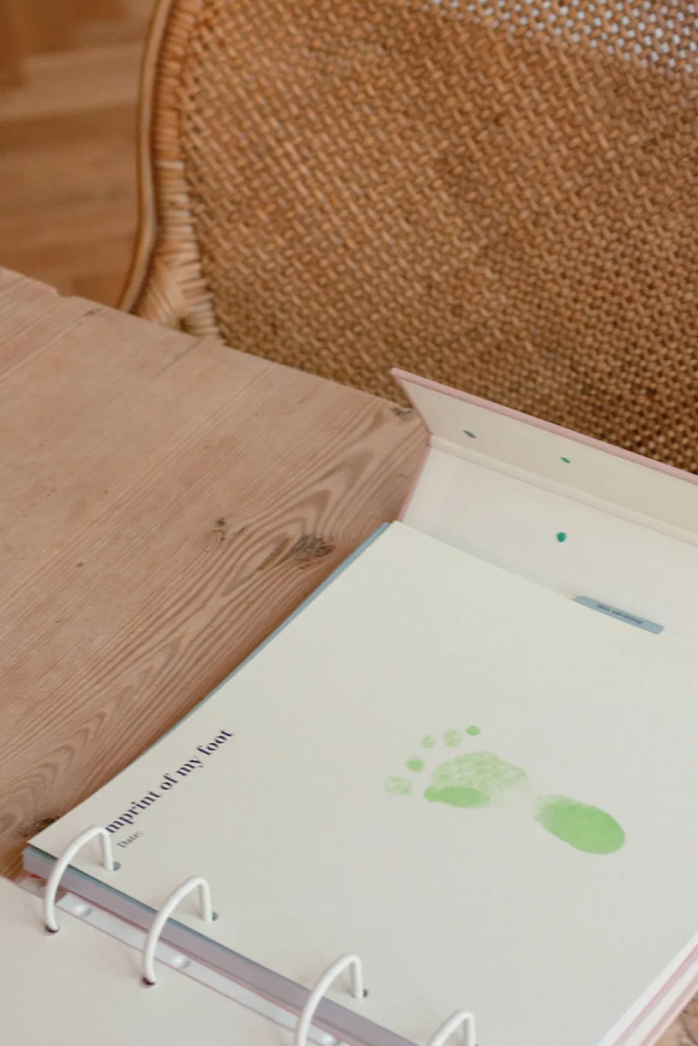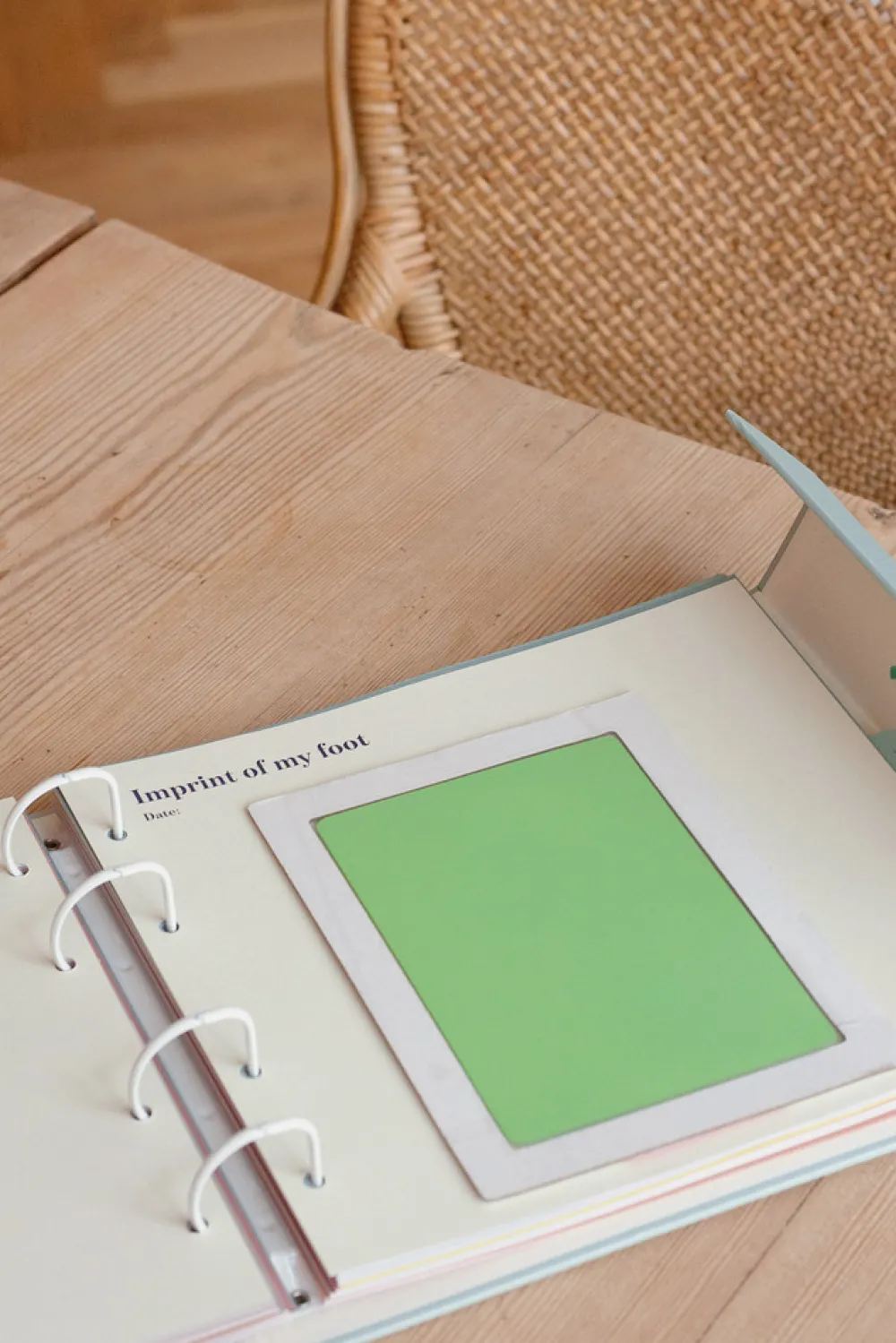 Hånd- og fodaftryk til baby og små børn i fine farver, der passer til siderne i barnets bog fra Specialday. Non-toxic clean-touch blækpude.