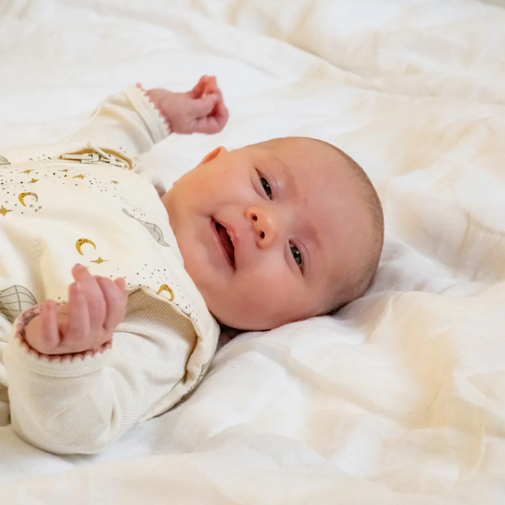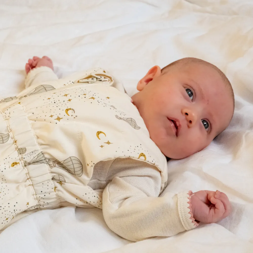 Soveposen hjælper dit barn med at føle sig tryg og varm igennem natten og kan også bruges til lure i løbet af dagen. Soveposen har et elastikbånd i taljen, som gør at posen bliver på plads, når baby vender sig. Soveposen kan åbnes fra toppen og bunden med en praktisk dobbeltlynlås, som er placeret foran i midten af soveposen.