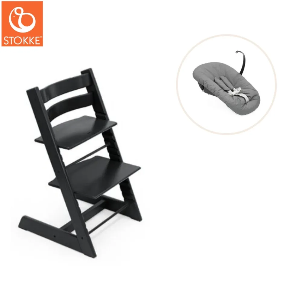 Tripp Trapp® Højstol bøg inkl. newborn sæt - sort-Børn Højstole Med Tilbehør