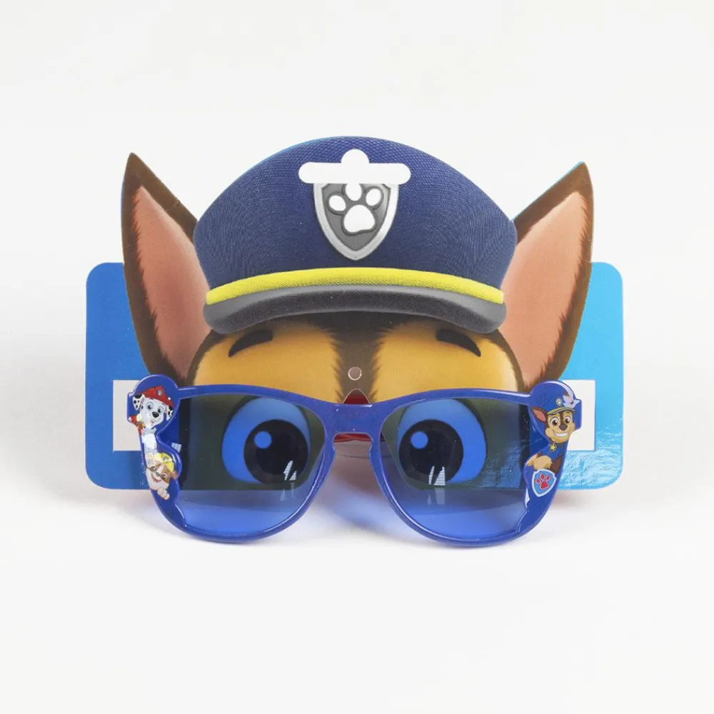 Solbrille med Paw Patrol i blå og røde farver og med motiver fra Paw Patrol.